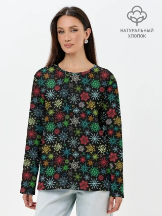 Лонгслив женский. Хлопок / Разноцветные Снежинки