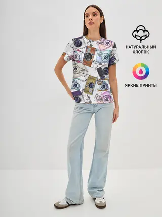 Мужская футболка оверсайз / Старинные фотоаппараты