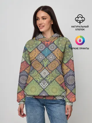 Женская футболка оверсайз / Мандалы лоскутный печворк