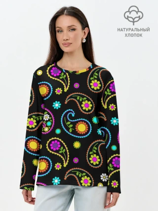 Лонгслив женский. Хлопок / ЦВЕТЫ