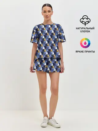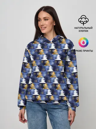 Женская футболка оверсайз / Ёлочки - Снежинки