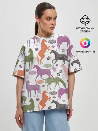 Женская футболка оверсайз / лошадки