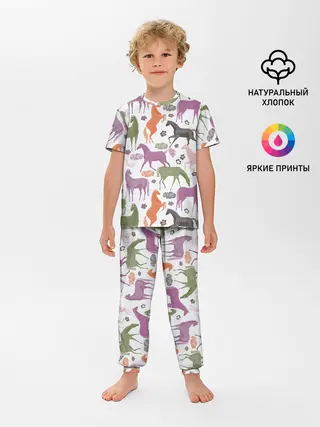 Детская пижама с брюками / лошадки