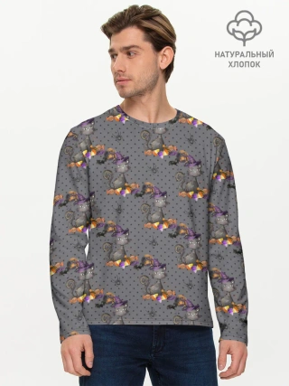Мужской лонгслив базовый / Кот с тыквой хэллоуин