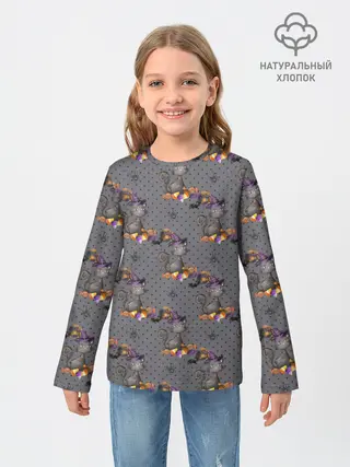 Детский лонгслив / Кот с тыквой хэллоуин