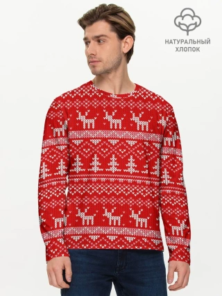 Мужской лонгслив базовый / Новогодний узор с оленями и елкой