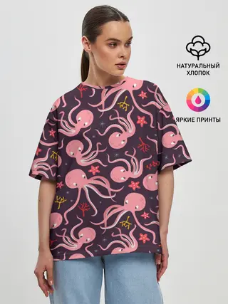 Женская футболка оверсайз / Осьминоги