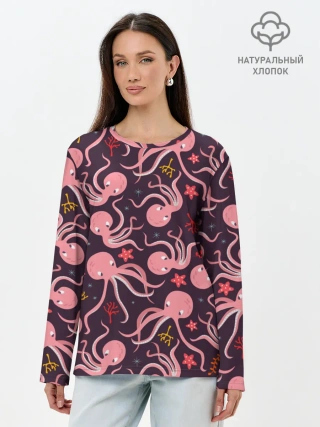 Лонгслив женский. Хлопок / Осьминоги