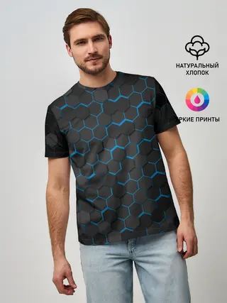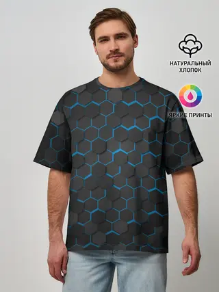 Мужская футболка оверсайз / OCTAGON голубой