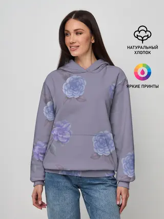 Женское худи / Голубые камелии на сером