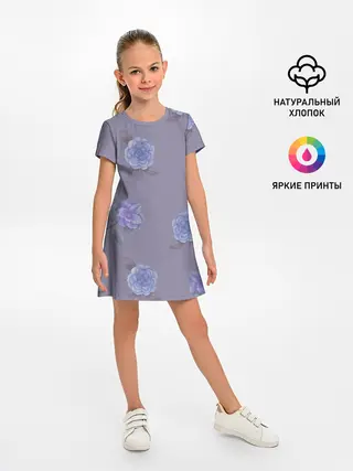Детское платье / Голубые камелии на сером