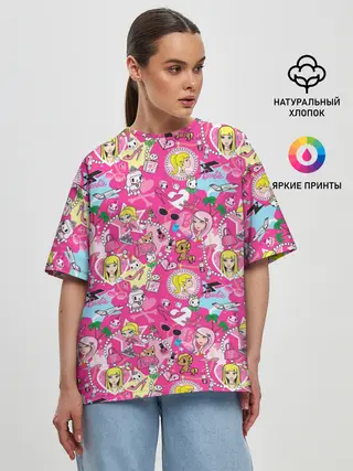 Женская футболка оверсайз / Barbie and Tokidoki