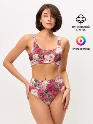 Женские топ и трусы / Акварель, розы