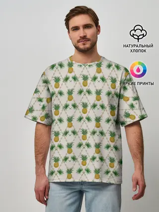 Мужская футболка оверсайз / Узор ретро Ананасы