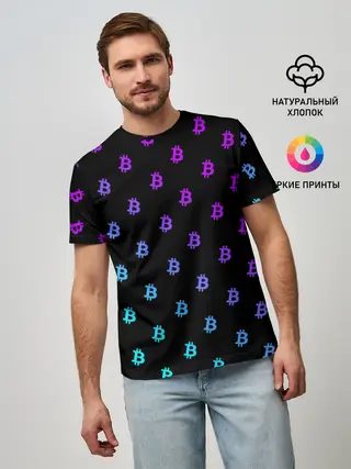 Мужская базовая футболка / БИТКОИН НЕОН |BITCOIN NEON