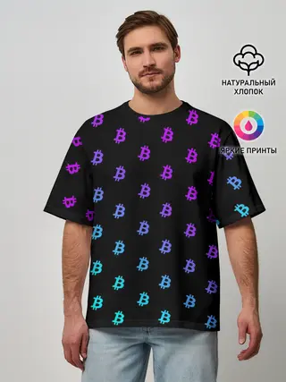 Мужская футболка оверсайз / БИТКОИН НЕОН |BITCOIN NEON