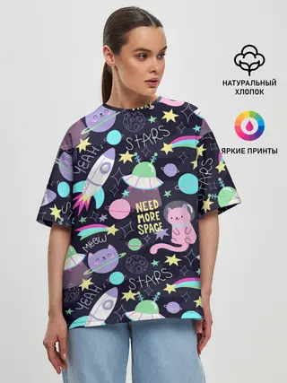 Женская футболка оверсайз / Коты-космонавты