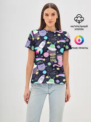 Женская базовая футболка / Коты-космонавты