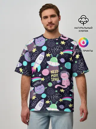 Мужская футболка оверсайз / Коты-космонавты