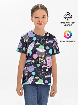 Детская базовая футболка / Коты-космонавты