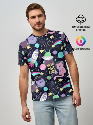 Мужская базовая футболка / Коты-космонавты
