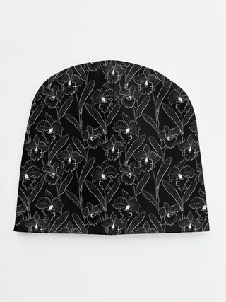 Детская шапка / Цветы орхидеи на черном