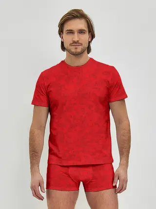 Мужские трусы с футболкой / Ярко-красный мраморный узор