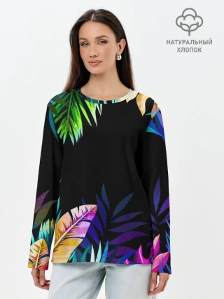 Лонгслив женский. Хлопок / Тропическая Ночь