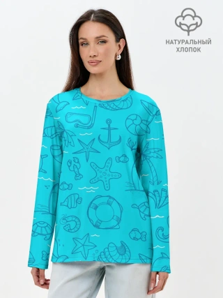 Лонгслив женский. Хлопок / Морская тема