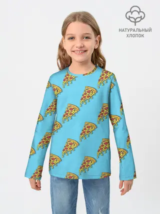 Лонгслив женский. Хлопок / Пицца паттерн на голубом