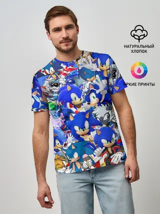 Мужская базовая футболка / SONIC СИНИЙ ЁЖ СОНИК