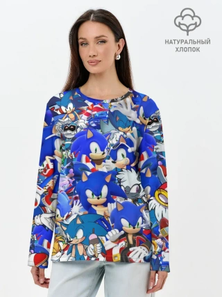Лонгслив женский. Хлопок / SONIC СИНИЙ ЁЖ СОНИК