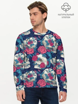 Мужской лонгслив базовый / Реалистичные черепа с розами