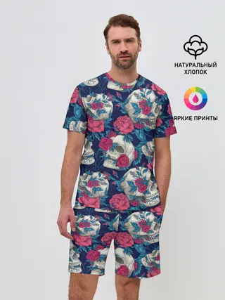 Мужской костюм с шортами / Реалистичные черепа с розами