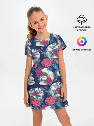 Детское платье / Реалистичные черепа с розами