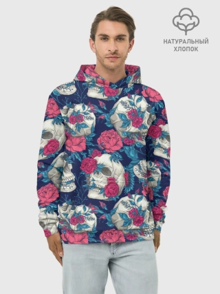 Худи мужской база хлопок / Реалистичные черепа с розами