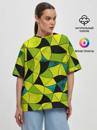Женская футболка оверсайз / Гранжевый яркий зеленый