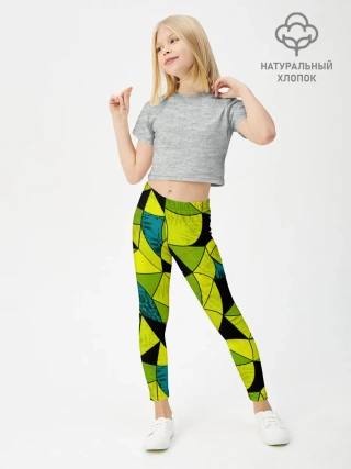 Леггинсы для девочки / Гранжевый яркий зеленый