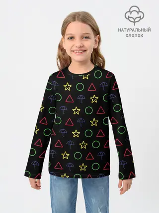 Детский лонгслив / ИГРА В КАЛЬМАРА, ФИГУРКИ ИГРЫ, ПЕЧЕНЬЕ