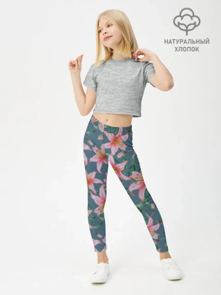 Леггинсы для девочки / Лилии на сером фоне