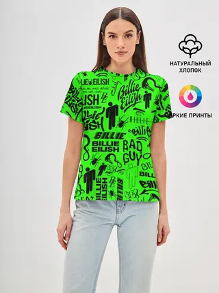 Женская базовая футболка / BILLIE EILISH | БИЛЛИ АЙЛИШ LOGOBOMBING