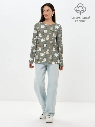 Лонгслив женский. Хлопок / Кошечки с рыбками