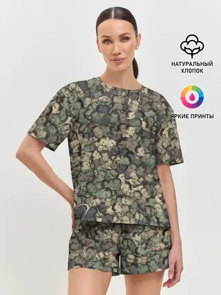 Женская пижама с шортами / Камуфляж Зеленый Слоник