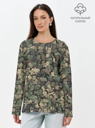 Лонгслив женский. Хлопок / Камуфляж Зеленый Слоник
