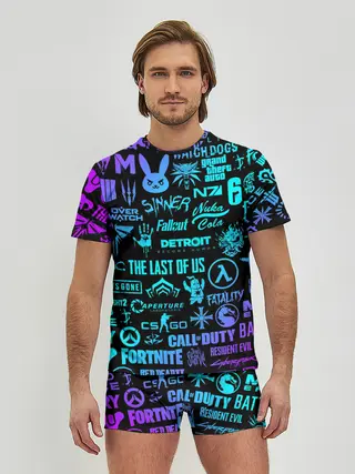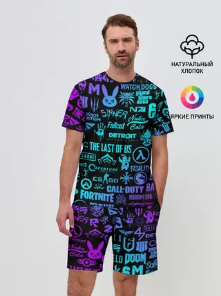 Мужской костюм с шортами / ЛОГОТИПЫ ИГР НЕОН / NEON GAMES LOGO