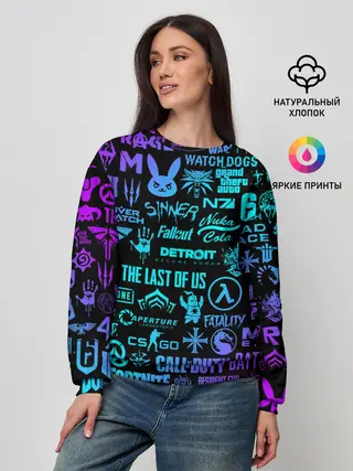 Женский свитшот / ЛОГОТИПЫ ИГР НЕОН / NEON GAMES LOGO