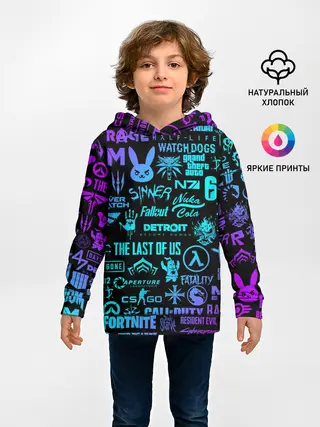 Детское худи / ЛОГОТИПЫ ИГР НЕОН / NEON GAMES LOGO