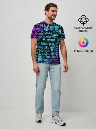 Мужская базовая футболка / ЛОГОТИПЫ ИГР НЕОН / NEON GAMES LOGO