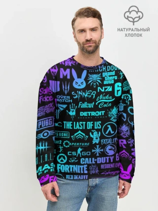Мужской свитшот базовый / ЛОГОТИПЫ ИГР НЕОН / NEON GAMES LOGO