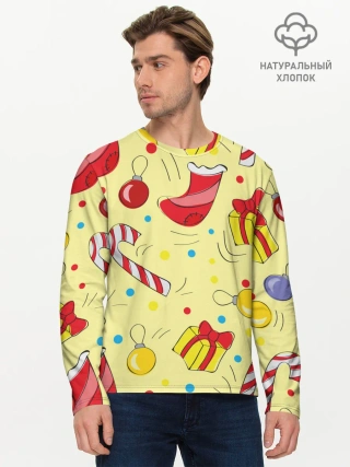 Мужской лонгслив базовый / Новогодний узор на желтом фоне